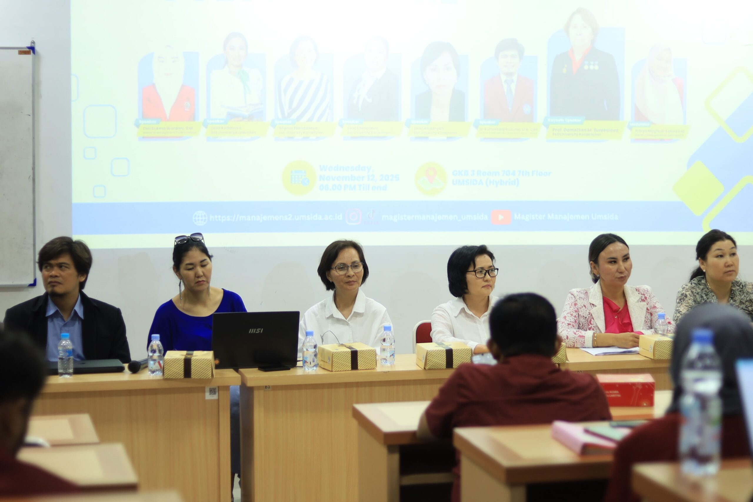 Kegiatan ini menjadi momen penting karena Umsida menyambut kedatangan empat delegasi mahasiswa Esil University, Kazakhstan, yang hadir untuk mempresentasikan riset mereka dan berdiskusi dengan mahasiswa Magister Manajemen (MM) Umsida.
